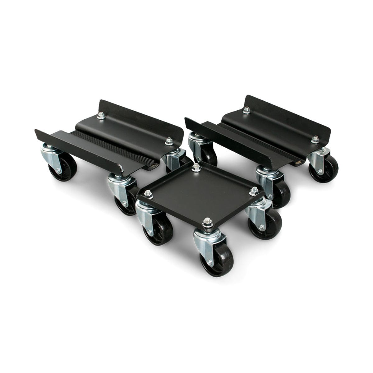 Samhliða flöt járn tryggja að sleðinn liggi stöðugt og örugglega á standinum. Smíðað úr sterku 3 mm stáli með duftlökkuðu matt svörtu yfirborði fyrir hámarks endingu og stílhreint útlit. Hver plata er búin fjórum hjólum til aukins stöðugleika og auðveldrar hreyfingar.